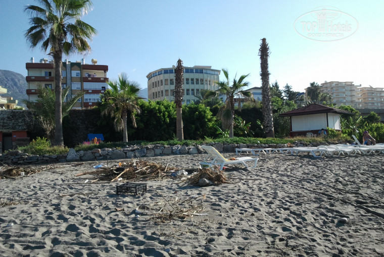 Пляж не убириали и не чистили, там закрыли бар, туалеты, убрали зонты. Мусор , выброшенный на берег после шторма так и остался лежать до конца отдыха. На пляже было много народа не из отеля, видимо работники продавали лежаки всем желающим.
