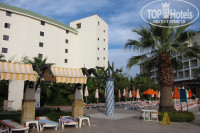 Территория - не большая и не маленькая. Ухоженная. Есть гамаки, качели, шезлонги на травке. У бассейнов и на травке шезлонги всегда бывали заняты. Порадовало, что речку, которая впадала в море возле пляжа, отвели в сторону. Сам отель находится на выселках: при выходе за его территорию небольшой базар, в 15-20 минутах ходьбы шоппинг-центр и базар побольше. До ближайшего населенного пункта (Манавгата) ехать минут 20.