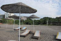 Пляж не очень чистый, местами с мусором. Про лежаки и зонтики тут уже писали ранее, не буду повторяться. Море замечательное: теплое, прозрачное, очень красивого цвета. Вход - песок и галька, но вполне приемлемо.Хочется отметить кусающихся рыбёшек, которые сумели доставить неприятности некоторым отдыхающим. То тут, то там, было слышно, что кого-то опять укусили :).