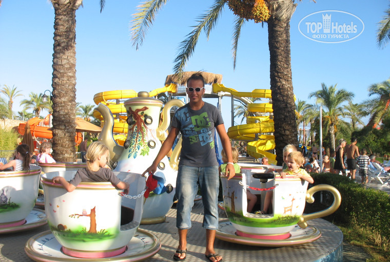 Отдыхали в отеле с детьми (8 и 13 лет). Туроператор PEGAS Touristik. Всем очень понравилось. Персонал просто супер. Все приветливые. Всегда готовы были помочь. Попросили второй ключ от номера - пожалуйста (не во всех отелях выдают второй ключ). Очень пугала дорога между отелем и пляжем (всегда отдыхали только в отелях на первой линии), но и дорога оказалась не страшной - защитный экран, весь в зелени и дороги совершенно не видно и практически не слышно. Первый раз видела такой узкий пляж)), заходили в море напротив смотровой вышки. Анимация замечательная. И не жалко отдать 10 $ (из них 1,5 возвращается ввиде жетона на игровые автоматы) за раскрашивание сумочки, потом столько восторгов, когда детей поднимают на импровизированном троне. Старший сын все время зависал на футбольном поле или на горках. Дошли до ближайшего базара (полная ерунда) - несколько магазинчиков, цены, как и в отеле. Еда вкусная, пончики просто объедение)). Очень красивый салют был на Турецкую ночь. Столов, лежаков и т.д. всегда хватало. Вывод: Отель ОТЛИЧНЫЙ. ДЛЯ ДЕТЕЙ ПРОСТО РАЙ. Вернемся сюда еще раз.