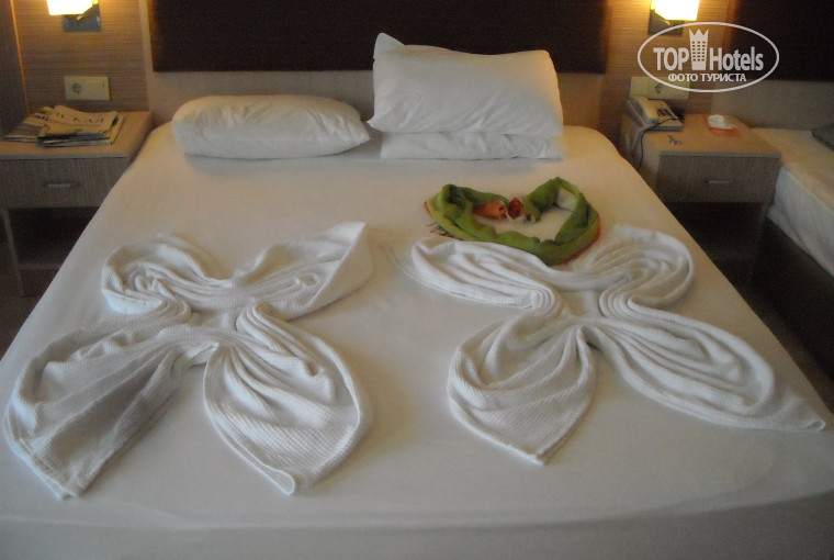 Недостатки: отель расчитан только на немцев (с другой стороны это достоинство по сервису), впрочем это недостаток всего Сиде - Сиде это вотчина немцев, а еще точнее - немецких пенсионеров. Это первоначально буквально шокирует - куда я попал! Но уже через часа 3 привыкается, замечаешь, что среди многочисленной пенсии есть и молоденькие лица, загорающие а топлесс. Ужасная для русского немецкая анимация.(Не покупайте путевки в 2 отдельных здания рядом с отелем, в ближнем из-за вечерних выступлений аниматоров долго не уснете), узкая полоса пляжа отеля (сначала долго не могли понять почему нас гонят с лежаков).