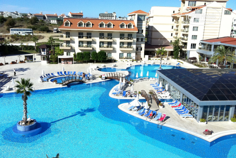 в общем при большом желании минусы у отеля найти можно,но они настолько незаметны, и столько много плюсов, что в общем все круто.Воду дают везде в бутылках в неограниченном количестве, кола в барах из стеклянных бутылок.Алкоголь местный, но абсолютно нормальный, бармены у бассейна очень клевые, всевремя делали какие-нибудь коктейльчики вкусные)))каждый день дискотека с 11 до 2 напитки также бесплатно)))музыка хорошая, интернациональная, можно попросить поставить что-нибудь на ваш выбор)))персонал в основном очень вежливый)))Barish)))это официант из лобби))мы поехали вдвоем с подругой, но в отеле много с кем познакомились и оооочень весело провели время)2 раза в неделю по вечерам караоке.и вообще не понимаю почему люди писали, что анимация никакая...аниматоры очень старались растормашить народ, и получалось надо сказать хорошо.2 или 3 раза в неделю аниматоры водят за 5 $ на дискотеку в Alya, мы так ни разу и не пошли нам и у нас было весело, диджеи очень приветливые товарищи)))Еда разнообразная, для любителей овощей вообще супер, много салатов, ягненок, баранина, кнели,морепродукты...)не далеко 2 достаточно больших базара, можно сторговаться гораздо лучше чем в Манавгате)И народ на улице не приставучий, можно спокойно выходить за территорию, конено, желательно в светлое время суток))на пляже свежевыжатые соки по 1$)