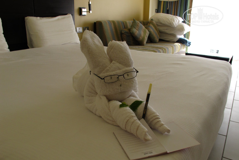 Но сам Отель заметно зазеленел, бассейны отличные, территория огромная, приятная глазу. Море, кораллы и рыбки - класс!!! Лифт - очень удобно! Номера - хорошие. Мы жили в Де Люкс (уборка номера нормальная, с украшением кровати). По этой категории размещения полагался завтрак в ресторане Рыбак. Отличный Де Люкс буфет: джемы в крошечных стеклянных баночках, семга, хамон, сырная (хорошие сыры) тарелка с черносливом и курагой, мелко нарезанный фруктовый салат: дыня, яблоко, банан, зернышки граната и т.п., свежевыжатый непроцеженный апельсиновый сок 1-2 стакана (бесплатно только в Рыбаке).