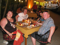 Далее трансфером (автобусом с кондиционером) были доставлены к отелю. Территория очень впечатлила, достаточно большая, много корпусов, зелено (пальмы, деревья, цветы), достаточно приличный бассейн, везде чисто, ухожено. На ресепшен персонал приветлив, деньги не вымогают, очень веселые ребята. Номера получили быстро, балкон выходил видом в сад и на главный ресторан. В номере: двухспальная кровать, холодильник, стол, зеркало, 2 стула, платяной шкаф, все чистенько, скромненько. Душ, туалет. Над потолком огромный вентилятор (говорят, что даже лучше, чем шумный кондиционер). Все устроило, мы не привередливы. Телека не было - МЫ ЖЕ ОТДЫХАТЬ ПРИЕХАЛИ, а телек в России посмотрим.