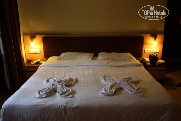 У нас был номер стандарт с видом на бассейн. В номере: 1ая комната - "зона отдыха": ТВ (плазма), диван, два столика, три стула, холодильник, чайник, чайный набор, балкон; вторая комната - "для сна" - кровать, две тумбочки по бокам, ТВ, шкаф, балкон (столик и два кресла); санузел - совместный - большой, чистый, горячая вода.