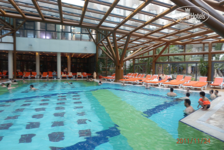 Инфроструктура отеля очень разнообразна и позволяет с каждым днем открывать что то новое. Очень зеленая территория отеля. Несколько открытых бассейнов позволяет выбирать место на лежаке с различным ракурсом. Закрытый бассейн понравился тем что он закрыт стеклопакетами, соответственно много дневного света и через стекла видно зеленую территорию отеля. Очень красиво.