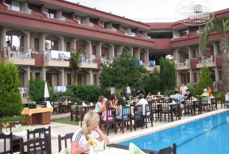неделю назад вернулась из этого отеля.Рассказывать особенно нечего , скажу только одно , что больше туда не поеду.Территория хоть и не большая ,но ухоженная.Персонал-достучаться можно до любого.В номерах чистенько , горничные убираются хорошо ,независимо от того , оставил ты чаевые или нет .А вот отдельная тема -это питание.Я ездила с мужем и реально он всё время ходил голодным ,тк наесться СОЕВЫМ!!! мясом нельзя да и есть его не хотелось.Одна ботва в ресторане.Питались на улице в кафе , на что местные удивлялись и спрашивали , нас что в отеле не докармливают.Хорошо что поехали без ребенка .В ресторане самое вкусное , это ХЛЕБ.И ВСЁ.Сладкого и выпечки там нет вообще! Вместо рыбы было рыбное кладбище , при том полное костей.Не советую ехать в этот отель.Если только брать BB . а не ALL.А что меня удивило ,то что хозяин отеля , который все эти дни находился там с семьей ,тоже всё это ел.Делайте выводы.3 с большим минусом
