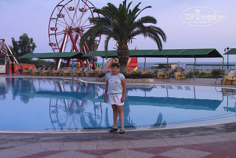немного смутил пляж с крупной галькой при входе в море ,поэтому детям больше нравилось купаться в бассейнах,шезлонги всегда есть.Отличная утренняя зарядка в главном бассейне.Хороший парк атракционов:батуты,электромобили,зал 5D.