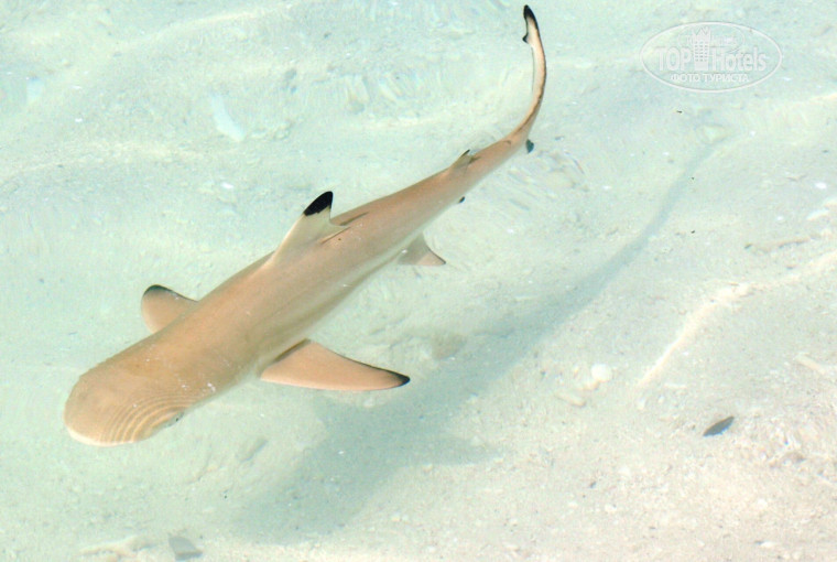 - Несмотря на это, 75% всех существующих рыб на Земле обитает именно на Мальдивах, поэтому океан там просто невероятный. За день мы увидели столько, сколько ни в каком Египте вам не встретить: бесконечное множество рифовых акул (то и дело плавали вдоль берега); нескольких маленьких скатов; стайку огромных мант; одного огромного пятнистого орляка (метра 2); двух небольших мурен (белую и черную); стайку дельфинов (плавали в 50 метрах от рифа); и множество огромных стаек рыб (до 1 метра + одиноко-плавающие до 2 метров). Временами бывало жутковато, но из-за обилия корма – все рыбы абсолютно безопасные (так нам сказали:) По острову постоянно бродят какие то цапли, на деревьях птички, летучие собаки или не знаю как они там называются (очень красивые, питаются исключительно фруктами:) Много крабов и всяких бегающих ракушек! Видели проплывающую небольшую змейку и, из опасного, - пару ядовитых рыб камень (в одном и том же месте у берега) и крылаток. Поэтому СОВЕТ: ни в коем случае не ходите босиком! Скаты, маленькие змеи и рыбы камень там есть!