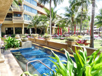 Территория отеля очень зеленая, много пальм. И вообще сказочное место. Находится прямо на берегу моря, что большая редкость для Пхукета. Дорогу переходить не надо.