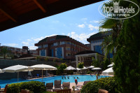Отдыхала я с мамой в этом отеле в августе 2011 года. Общее впечатление положительное. Жили в анексе, тот, который более старый. Нам попался номер у самой крыши, неплохой, небольшой, светлый, сыростью или еще чем-то не пахло. Белье белоснежное, всё чистенькое, но мебель старая и жуууууткая душевая кабина, которая постоянно протекала и была слишком маленького размера, что даже худому человеку не очень комфортно. До пляжа идти через переход, но это дело 2 минут, совсем не напрягало. Вид из номера частично на бассейн и горы, очень красиво.