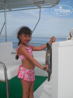 Морские экскурсии тоже на пляже, есть надёжный человек Аня (на фото).Выбор огромный ,главное погода. Мы брали яхту на весь день с рыбалкой, погружением в аквалангами, посетили четыре коралла, наловили рыбы, плавали с масками, гонялись за дельфином, но не догнали. Дети у нас сами управляли яхтой, а капитан в это время развлекал девушек. А ещё был вкусный обед и рыбу нашу нажарили- вкуснятина! Погода была шикарная ,мы с дочерью наплавались в море. В восторге были все и дети и родители. И всё это Аня нам устроила за 300 долларов. Если погода нелётная или маленькие дети, то есть подводная лодка, очень познавательно для детей. Ещё на пляже масса других развлечений, кроме лежания и употребления напитков.