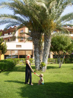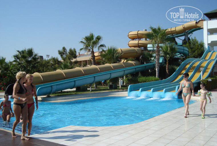 Отдыхали в этом отеле уже дважды (и в июле 2012 собираемся туда снова). Замечательный отель с огромной зеленой территорией и чистыми бассейнами. Море и аквапарк находятся в разных частях на значительном расстоянии, поэтому обычно полдня проводили на пляже, а вторую половину - в аквапарке. Вход в море удобный, песок плюс мелкая галька, и почти сразу глубокий. Ранним вечером в течение часа или двух работает луна-парк, многие аттракционы бесплатные.