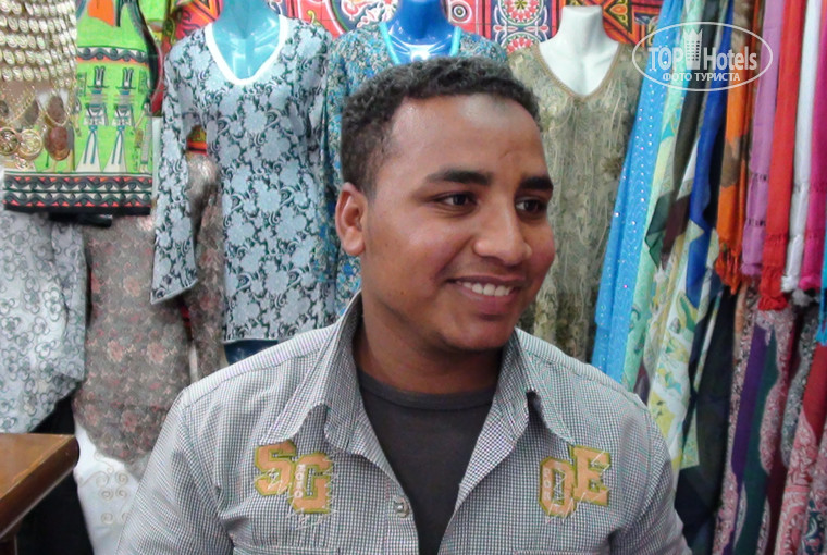 Море - хорошее, заход в глубину - постепенный, песочек, есть кораллы и рыбки. Но, несомненно, в Шарме их в десятки раз больше!!! Пляж хороший, уютный. Ветер только сильный, холодный! Нужно занимать места у заборчиков (типа плетня) от ветра. Из воды (она была 21 градус) выходили и закутывались в полотенца. Дополнительно на месте купили парочку больших полотенец по 6 долларов. Продавцы, кстати, очень хорошие в магазинчиках около нашего рецепшен - Майкл и еще Ахмед (см.фото). Цены у них дешевле, чем в других местах и торговаться можно было нормально. А вот в магазин внизу Эмеральда, где торгует Али, не ходите!!! Этот из-за одного доллара удавится!!!!! И цены у него значительно дороже, чем в других местах. Голову только морочит, когда торгуется, прохиндей ещё тот!!! Обязательно сходите в магазины с фиксированными ценами: при выходе из отеля - влево минут 5 пройти, там магазин "Султан", а вправо - перейти дорогу и пройти минут 10-12, там магазин "Клеопатра". В этих магазинах можете даже просто походить-посмотреть, чтобы знать примерный уровень цен и потом торговаться у себя в отеле со знанием дела. Так можно более выгодно сделать покупки. А что-то из наших покупок в тех магазинах дешевле вышло.