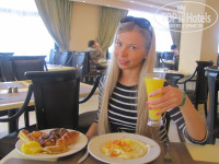 Много фруктов и выпечки, мяса в основном вечером. Лучше приходить в первые полчаса потому что выбор больше. Мы кушали только в Даймонде потому что в других отелях не понравилось.