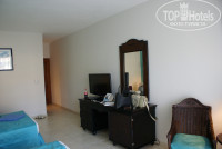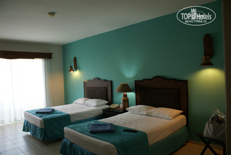 Встретили очень гостеприимно, расселили за 10 минут (в отель нас привезли около 16 часов). Достался 1й корпус от моря)) Номера чистые, ремонт в порядке (никаких вырванных розеток и сломанных унитазов) все аккуратненько, большая плазма, минибар, фен, даже утюг и гладильная доска есть! (для своих приборов нужен переходник на американскую вилку, в магазинчике на ресепшн он стоит 3 доллара), одним словом обычный стандартный номер, единственное чего не хватало - это верхнего освещения, но это мелочь.