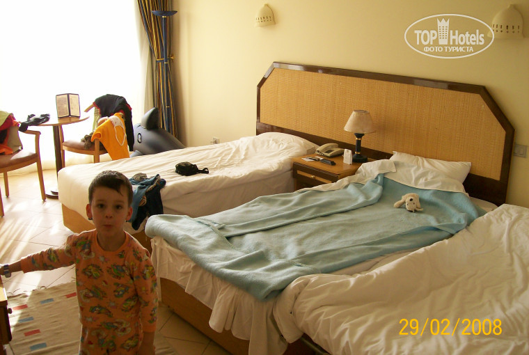 Отель так себе на троечку.... Территория маленькая, чистенькая, пляжа как такового нет( Вместо пляжа небольшой клочок песочка (грязного), купаться невозможно, потому как рядом стоят на приколе катера и от них на воде масляные пятна бензина( Номера тоже так себе...мебель старая, но все чисто. Это был наш первый отель в Египте и впечатления не были положительными, несмотря на наш первый выезд в Египет) В море покупаться нам не удалось(