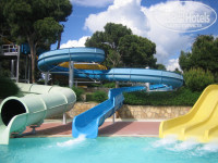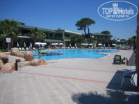 Территория конечно не огромная, но довольно большая. Есть свой аквапарк: 2 детские горки и 6 взрослых (3 прямые и 3 с виражами, одна с закрытой трубой). Везде очень красиво и ухожено. Пляж отличный. Лежаков как на пляже, так и около бассейнов и в зеленой зоне (на траве) с избытком. Лежаки на пляже разрешают перетаскивать куда нравиться, утром опять все выстраивают по линейке. Имеется детский клуб. На пляже байдарки и педальные катамараны бесплатно, скутеры, парашют, водные лыжи, банан за деньги. И бесплатные и платные в любой момент есть свободные.