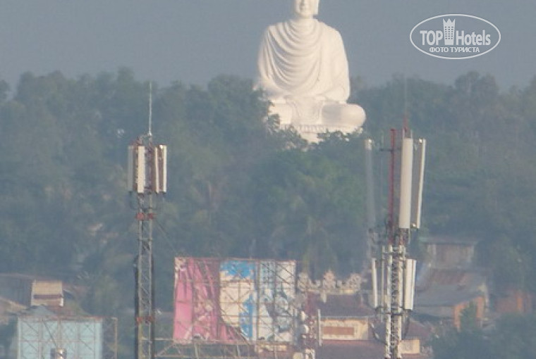 Из окна столовой (рестораном назвать рука не поднимается:-)) около стола с пустыми чистыми тарелками видно Будду на горе - зрелище впечатляющее- мы туда не добрались.