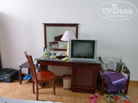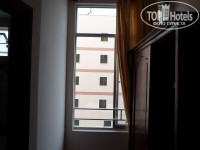 В номере (поменянном и даже не знаю его статус) достаточно просторные кровати, тумбочка, стол (внутри холодильник), чайник, телевизор, фен, кондиционер,пара маленьких кофейных чашек с блюдцами,шкаф для одежды, в нем сейф. Сперва я бурчала по поводу дизайна номеров- окно маленькое, еще и практически за шкаф спрятано, второе в ванной комнате, а потом решила, что так даже лучше, оно у нас все время было занавешано от солнца и закрыто.