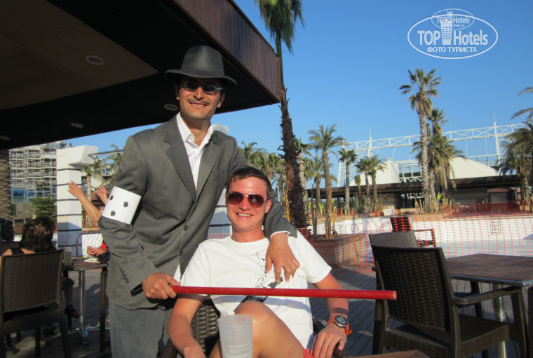 Отдельное спасибо парню-официанту из лобби бара ,пытались поблагодарить его чаевыми, он обиделся и сказал, что заставил наш столик лукумом,чипсами,орешками и ледяным(постоянно менял) вином от души, а не за деньги!Было стыдно..