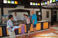 Ещё из МИНУСОВ ОТЕЛЯ ЭТО ПОЛОТЕНЦА НА ПЛЯЖЕ!!!! Их выдают по карточкам, карточки все замызганные,можете попаться на том, что человек выдающий полотенца возьмёт карточки и не счетая сколько вы им их дали бросит их в общую кучу , а выдаст на одно полотенце меньше, так что следите за этим,при потере карточки или полотенца штраф 20евро,мы так попались отдав 4 карточки получили 3 полотенца и доказывали что мы не верблюды уже на ресепшен. Сами полотенца, которые мне кажется стирают выборочно или вообще не стираю,но есть полотенца и чистые, и новые на вид, но они не для русских, их выдают только иностранцам, как бы вы их не просили!!!!! Нам пришлось выдавать себя за английчан, чтобы пользоваться даными полотенцами (спасибо лингвистическому образованию). Если вы хорошо владеете иностранным языком, полотенца будут ваши), иначе будете пользоваться тем, что дадут.))) Кстати полотенец тоже на всех не хватает, имейте это в виду!!!!