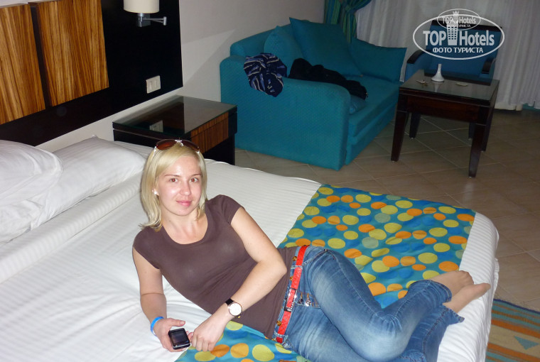 всем привет,отдыхали с молодым человеком с 5,04 по 13,04 2012год!!Начну с начала-прилетели мы в аэропорт прошли визовый контроль,визу не покупали так как выезжать никуда не собирались!летели от пегаса,нас встретили в аэропорту,развезли по отелям.В отеле все нам улыбались,соответственно и мы им!Заполнили анкету и нам выдали ключи,денег мы не давали!Придя в номер мы были в восторге!Такая же комната как и на фото,кровать двухспальная,везде чистенько!!Да мебель чуть пошарпана,ну извините люди-вы сами ее портите,а арабы что каждый месяц должны вам ее менять???Потом пришел чувак с нашим чемоданом и хотел содрать с нас 20доларов,но мы ему вежливо объяснили что он ничего не получит!!Он ушел.Номер выходил на территорию отеля,очень красиво.Да,на территории отеля идет стройка,но нам она не мешала.Люди вы меньше давайте арабам деньги,и вас и заселят хорошо и относится будут тоже не плохо!!