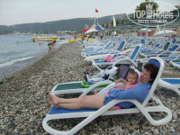 Пляж хороший, чистый, немного напрягала галька, но взяли тапочки за 15 дол. и все ок. Лежаков хватало. Мы загорать не любим, поэтому купались в спец. майках и дитю сшили такую же из спортивного купальника, так что наслаждались морем в любое время. Ни кто не обгорел, зато наплавлись вволю, даже видели черепах...