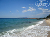 Море чистое, прохладное с утра, но к 10-11 уже теплое. Но при входе в море есть камушки метра 2 шириной - полоса, потом песочек. Очень красивый вид,а по вечерам красивые закаты. На пляже с утра ходили местные продавали вкуснячую кукурузу, оочень ненавязчиво. мы всегда покупали для дочки, стоила она 2 евро.