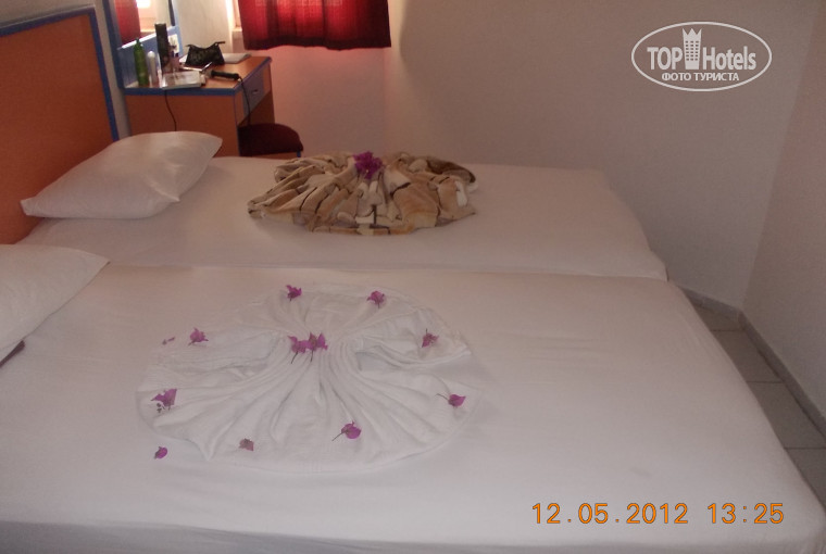 Доброго времени суток! Мы приехали из отпуска, отдыхали в Blue Wave с 1 по 14 мая 2012 года. В аэропорту нас встретили, развезли по отелям, все четко, хотя ехали часа два так завозили туристов в отели, наш был четвертый. В отеле нас разместили очень быстро, наш номер был на 3 этаже с видом на бассейн, очень красивый вид, по вечерам слышна музыка с соседних кафе в живом исполнение и нужно сказать, что очень хорошо поют, но все это часов до 11 вечера, т.е по ночам мы спокойно спали. По поводу уборки в номере убирались каждый день, постельное белье меняли раз в три дня. Из простыней делали цветы, посыпали лепестками. В течение всего дня горничные мыли в отеле все, что можно, очень чисто. Бассейн мыли каждое утро, лежаки, столы. В ресторане все очень вкусно, на любой вкус. Много овощей, котлетки, курочка, очень вкусные, дети у нас уплетали за обе щеки, и еще за добавкой ходили. Баклажаны, кабачки и запеченные и рулетиками . Очень вкусная выпечка, пирожные, десерты. Голодными вы точно не останетесь. Официанты молодцы, очень шустрые, приветливые. Если вы едете с детьми, то ваш ребенок будет окружен вниманием. Турки очень любят детей, они проходя мимо и по головке погладят и лишний раз поинтересуются, что принести. На рецепшене русскоговорящая девушка Олеся, очень милая, все подскажет, другие сотрудники мало говорят по-русски, но если вы хоть немного знаете английский то поймете или даже просто элементарно на жестах! Море находится в минутах 7-10 от отеля. Заход в море песок и галька, глубина не резкая, плавно. В мае мы купались, вполне комфортно, лежаков много. Анимация есть и для детей и взрослых, взрослых после 23,00 приглашают ехать на дискотеку . В общем мое впечатление очень хорошее! Чувствуешь себя как дома, много уютных уголков где можно посидеть за чашечкой кофе или бокалом вина. Мое мнение, что этот отель заслуженно должен иметь статус 4+ Всем хорошего отдыха, берите с собой хорошее настроение, а все остальное вам там предложат!