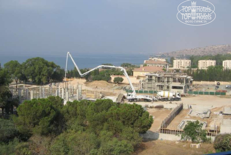 Поехали двое с ребенком заплатив 2600 евро+260евро за "вид на море". Вид на море оказался скорее "видно море", ибо из номеров открывается замечательный вид на стройку и раздолбанную грунтовую дорогу к морю, заваленную хламом (фото см.) За реальный вид на море запросили еще доплату. Посмотрели мы номер на 5-м этаже... да, вид лучше, но имеется дверь в соседнюю комнату, что при наличии курящих соседей-телезрителей крайне гиморно, поэтому приняли решение остаться в своем номере. И как оказалось, правильно. Оказывается сей отель, позиционирующийся как "тихий семейный", за 12 дней нашего отдыха успел провести на берегу в баре-ресторане 2 свадьбы и 1 тусу с песнями и танцами до рассвета (как рассказал толстый дядя, поменявший номер 409 на "full вид на море"). В другой день пьяные буржуины всю ночь купались в бассейне и орали. Так же можно ночью послушать музыку, доносящуюся и из других мест :)