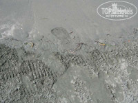 Отель распологается под углом градусов 35-40 по отношению к береговой линии, поэтому даже из номеров с полным видом на море видна стройка справа. Почему так расположен сей отель? Да потому, что на востоке от него, на растоянии пары километров распологается ТЭЦ №1, из труб которой порой валит такой черный дым по утрам, что как-то пропадают мысли об экологической чистоте данного острова. И что самое поганое, за ТЭЦ находится какой-та заводик и по белой пыли, пребывающей на нем, можно догаться что заводик малость цементный... Желающие могут посмотреть на это дело на maps.google.com или на моё фото. Если ветер дует с берега, то в море летят облака пыли и мусора с мест строительства, слева и справа. Сам отель имеет ступенчатую архитектуру, так что живущие на верхних этажах спокойно могут видеть, что происходит на балконах нижних этажей и сбрасывать на них пепел. Правда и нам какой-то козел из 508-го номера набросал полный балкон пепла, хотя у каждого на балконе есть стол и на нем пепельница. Но тем кто привык втыкать окурки в пляж, пепельница непривычна.