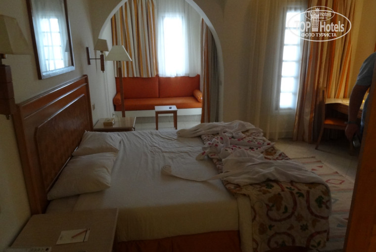 Никаких претензий к номеру, заселили бесплатно с видом на море и бассейн на второй этаж. Все работало, трещин нигде не наблудалось все было целым в спокойной цветовой гамме. Уютно. Дали халаты, т.к мы молодожены.