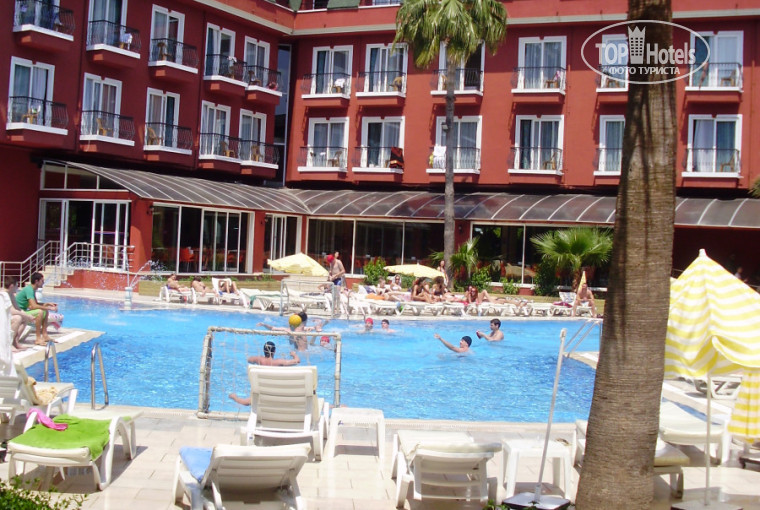 В отель прилетела 30.04.2012. Отель очень понравился, уютный, красивый, молодежный, находится в двух минутах от собственного пляжа, пляж галечный. Отель находится в самом центре города, в 5-10 минутах находятся клубы, т.е. при желании можно прогуляться пешком. Анимация работала прекрасно, хотя начало сезона)) Еда в отеле вкусная, но однообразная, давали и курицу, и индейку, и рыбу (назнавание не знаю). В моем номере 633 работало все, сантехника практически новая. Были перебои с подачей воды, но сильно это не напрягало, примерно через минуту начанала бежать снова. Местная выпивка оставляет желать лучшего... Погода еще в это время не очень стабильная, из 8 дней, 2 было пасмурно и чуть лил дождик. Вода в море холодная, но все купались. Кстати в бассейне тоже вода была еще холодная, но это дело привычки)) Днем температура воздуха доходила до 33, так что при их климате было очень даже комфортно