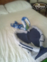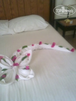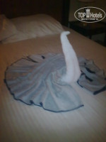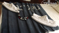 Номер у нас был большой, на первом этаже. Открыл французское окно и перед тобой большая терраса увитая цветами. Каждый день нам делали из полотенец фигурки разные. Некоторые мы сфотографировали. Убирали в номере каждый день чисто.