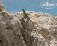 Слева от отеля скалистый массив (отличное место для фотосессии)), справа замечательный пляж с мелким песочком. Для тех, кто кто не хочет платить за лежаки на пляже идеальным вариантом будет занимать шезлонги у отеля ближе к пляжу и периодически спускаться по лестнице к морю.
