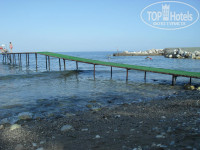 Пляж не большой но лежаков много . Море очень чистое заход крупная галька есть пирс с него сразу глубина метра полтора, под пирсом видели осьминога))