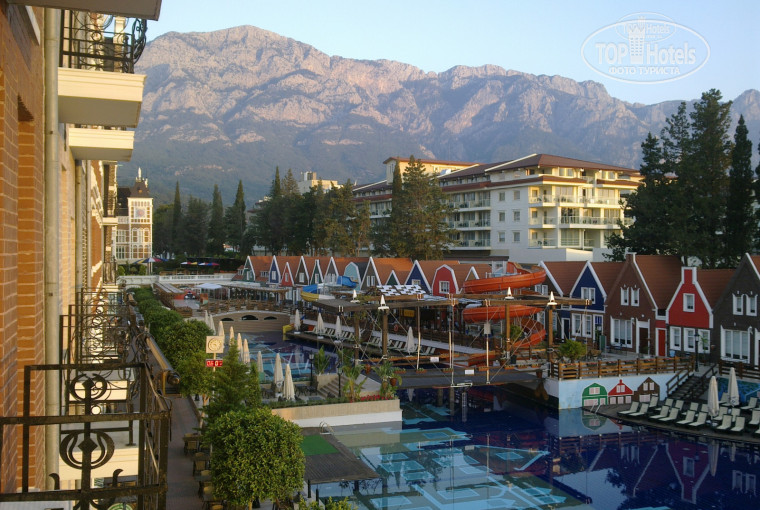 Здание отеля красивое (необычное для Турции) и очень огромное, бассейны пропорциональны зданию и условно разделены на 3 зоны в т.ч. есть детская часть, имеются 2 горки (не испытывал).