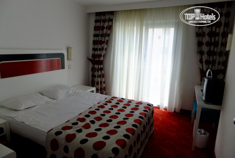 за вид не платили, но море из одного окошка было вполне видно (фотки номера выложу). номер двухкомнатный с дверью между комнатами, в номере три полноценных кровати (одна двуспалка) никаких этажерок, холодильник - мини-бар, большущий шкаф с сейфом внутри ($3 в день, печалька - но пришлось платить), на полу мягкий ковролин, в ванной скользкая плитка, и... целых ДВА кондея правда с одним пультом и надо приноровиться чтобы их оба использовать, два телевизора, вот уж лишняя вещь, ах да и диван еще. оформление номера, как говорится, простое но вкуса не лишено.