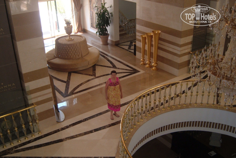 Всем советую отдохнуть в этом отеле. Ездила с мамой и ребёнком. В прошлом году сыночку исполнилось 7 лет. Мы ни в первый раз отдыхали в Турции - пару раз были в MegaSaray, в Аdora, Bel Conty. По сравнению с Alva Donna - все эти отели отстой. Питание было супер - всё очень вкусное и разнообразное. Вечерняя анимация очень интересная, правда дискотека отстойная - диджей включит что-то совсем скучное и не танцевальное, выйдет на площадку и стоит, наблюдает, а люди заглянут, послушают что за музыка и сваливают - вот и вся дискотека. Что отличает этот отель от других отелей - мороженое с утра до вечера, а не по часам (не надо ждать когда его принесут и стоять в очереди). Вода в бассейнах тёплая - особенно в детских бассейнах. Есть два детских бассейна - один для малышей с грибочком, маленькими горочками, второй с горочками побольше для детей от 5 до 7 лет (не глубокий, дети могут бултыхаться в нём самостоятельно). И там и там вода тёплая, а ни как в других отелях - ледяная. В больших бассейнах вода тоже подогретая. Горки хорошие, ни обшарпаные. Персонал приветливый. Отель не большой, но очень красивый, территория ухоженая - эту красоту словами ни описать, нужно поехать и увидеть, пляж чистый. Рядом с отелем есть базар, где можно купить всё, что угодно - ни нужно для этого никуда переться. Нам очень понравилось. Теперь мои родные говорят: - "Если поедим в Турцию, то только в Альва Донну". Желаю всем приятного отпуска.
