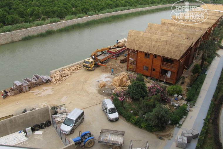 заселение: приехали ночью, но заселили сразу, правда из мы еще из дома звонили договаривались. предложили всего 2 номера один с видом на речку, другой на море (доплата 114 дол) но очень шумный - дорога прямо перед окнами. взяли на речку. в темноте не увидела что под окнами СТРОЙКА. на ресепшене конечно не предупредили. вообще мешали спать ночью 3 раза - привозили материалы. днем если в номере не бываете, то нормально, хотя дети мои спали и на стуки молотка и болгарки не обращали внимания.