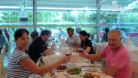 Жалоб не имею. В основном ресторане по утрам как обычно в Турции: всяческие блюда из яиц, колбасы чересчур розовые, множество вариантов сыров, булочек, йогуртов с фруктовыми добавками. В общем, без изысков, но точно не голодно. Девушка по залу толкает тележку, предлагает чай и кофе. Но хочешь – иди сам к баку и наливай. Только утром бывает свежевыжатый апельсиновый сок. Официант выносит стаканы на блюде, я просто рукой подзывала и он выдавал сколько просишь. Ну и как уже ранее писано в воскресенье утром шампанское. Сладкое, мне лично такое не по вкусу.
