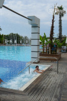 Открытых бассейнов 2 (не считая детского и того, что с горками), в обоих глубина 1.4 м. У основного шумнее: там аниматоры народ развлекают, все водные виды спорта и игры. Посему пару дней проведя у основного, затем переместились к релакс-бассейну. Правда, там ненамного тише (во всяком случае в той его части, что поближе к основному). Но там имеются 3 круглые чаши с джакузи (работают лишь в дневное время). И вот кстати: вокруг релакса стоят таблички, что у этого бассейна запрещено находится гостям, не достигшим 16-ти лет, но все отдыхающие отеля не обращают внимание на это и детишек там тоже не мало. Справедливости ради скажу, что не только русскоговорящие дети орали, но и немецкие тоже. Хотя русских больше (во всяком случае их слышнее, что ли).