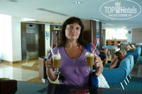 Отдельно про напитки. Заявленный фирменный коктейль Concorde ерунда полнейшая. Не понравился абсолютно, какой-то химией тянет. Видимо, это от того разбавленного зеленого якобы сока, что туда наливают. А вот кофе Concorde очень даже вкусный. Туда добавляют ликер и кучу взбитых сливок, я почти каждый день его хоть бокальчик да выпью. :-))) Из прочих коктейлей Oasis еще ничего.