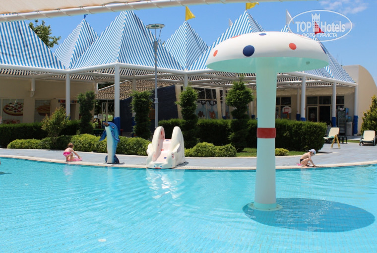 2. Питание: Во-первых, конечно детский стол - просто отлично, большое спасибо повару. Ребенок ел с удовольствием, всё что не съел ребенок, с не меньшем удовольствием доедала я. Борщ, щи, куриный суп, овощной суп, паровые котлетки, картофельное пюре, тушеная курочка, молочные каши, омлетики - всё ооочень вкусно. Правда, детских стульчиков на всех не хватает, несколько раз приходилось ждать, когда освободится :( Взрослый стол - хорошо, была в отелях, где кормят намного разнообразнее, была в отелях, где кормят гораздо хуже. Поэтому могу сказать, что здесь кормят хорошо, без излишеств, но вкусно, голодным не останешься. Единственно, что нам не было удобно время работы ресторанов. Завтрак с 7 до 10, потом в с 12 до 16 работает снэк буфет, в это же время с 12.30 до 14.30 проходит обед в главном ресторане, а потом перерыв до ужина, который начинается в 19.00. Получается, что ребенок обедал в час, ложился спать, просыпался в четыре, а ребенка уже нигде не покормить только ждать ужин. Вариант с гёзлеме (работал с 12.30 до 17.00) не очень удобный, т.к. после четырех там выстраивалась огромная очередь. Также в районе 16.30 делали печеную картошку, но опять же огромная очередь и картошка заканчивалась минут за 15. В общем очень не хватало снэк бара работающего до пол шестого. Также с 10 и до 18 можно было поесть отличного мороженного (а потом оно и в ресторане на ужине), в баре с мороженым можно купить свежевыжатый сок за 1 евро, а вечером и кальян покурить.