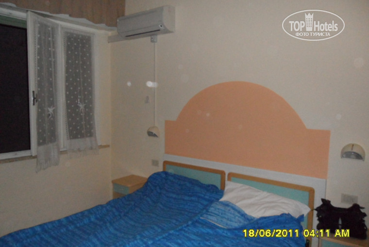 Размещение: разместили быстро. Номер был с окном, но без балкона. Вид из окна был на соседний отель, но с разумным расстоянием от нас. Впрочем, есть фото номера. Главное! Унитаз и душ были через перегородку! В отеле жили в основном наши сограждане, но мы их редко видели.