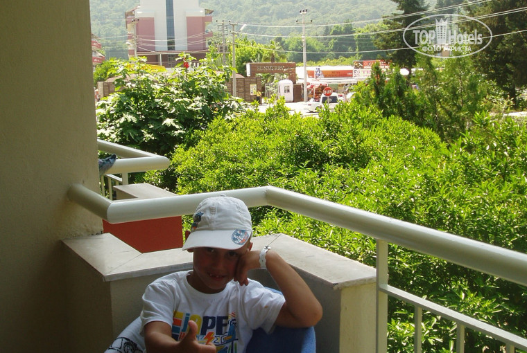 Комната обычная стандартная, чистая, на полу ковролин. Вообщем, если вы хотите тишины и прохлады, то просите комнату с видом на парк - он же "кладбище"), которого совсем не видно - деревья, зелень, горы. Если не боитесь шума и хотите созерцать бассейн, следить за бурной жизнью отеля, а также за детишками, можно выбрать номера, выходящие на другую сторону. С торцевых сторон здания, видимо, расположены корнерс-румы, 35 кв. метров которые. С одной стороны они с видом на дорогу, с другого торца - на море.
