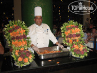 Питание. Выбор блюд - просто огромный. Нигде такого нет. Спрашивала потом у знакомых, которые отдыхали в других отелях. Питание 24 часа. Постоянно говядина, курица, рыба нескольких сортов и способов приготовления. Супы - 2-3 вида. Картофель - фри, пюре, кпуглый, по-деревенски, с какими-то добавками. Овощи печеные. Баклажаны - объеденье! Макароны, рис, какие-то овощные рагу. Всегда морской коктейль. Овощей полно. Фрукты - виноград зеленый и красный не кончался никогда, яблоки, бананы, апельсины не брали - они нам дома надоели, была дыня каждый день типа "колхозницы". Отдельно хочу сказать про арбузы. Они были каждый день. Но что творят наши соотечественники! Стыд какой! Выносят поднос с арбузами - тётки пузатые готовы весь поднос к себе в тарелки перевалить. Они что, арбузов у нас не ели? Сто рублей 10 кг. Неужели не стыдно? А потом будут жаловаться на живот! Мерзко. Тортов не могу передать сколько видов. Десерты, желе, выпечка, 100 сортов наверное. Хлеб вкусный. Всегда масло сливочное, джемы, маслины, оливки. На завтрак 3 вида йогуртов в огромных чанах, всякие хлопья, мюсли, сухофруктов видимо-невидимо. Яйца в разных видах. Круасаны - объедение! С пылу с жару. Кофе из автоматов - прекрасное. Мы такой и дома пьём. Пиво, вино белое и красное очень вкусное, легкое. В барах на пляжах - пиво в бутылках, коктейли разные из местных напитков, крылышки барбекью, картошка фри, что-то типа шаурмы, какие-то лепешки с мясным фаршем. В барах у бассейнов всякие напитки, бывает чай с тортами. Мы, правда не ходили. Попробовать хотелось всего, но не умещалось в желудке. Второй ресторан тоже хороший на пляже. Ходили и обедать и ужинать. Если опоздаешь на завтрак, обед или ужин всегда можно поесть в 3-ем ресторане в лобби. Забыла как он называется. Это просто праздник живота. Таблетки брали и все съели, так как понятно, что при таком обжорстве несварение обеспечено. Но особо никто не мучался.