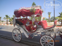Рядом променад, который проходит вдоль моря, и упирается в пристань для яхт, романтичное место, где прогуливаются влюбленные пары, иностранцы, много разных кафе, где можно просто сидеть и любоваться морем, яхтами и красивыми людьми.. Вечером набережная горит огнями..А если устали от прогулок, то можно за 5 динар домчаться до отеля в карете, украшенной цветами!