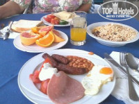 По питанию – «отвратительное». За 12 дней 3-4 кг лишних вам обеспечено, так как невозможно отказаться ни от чего. Первые три дня брали все по полной тарелке и съедали все(вспоминали юморитса про "все включено"). Ужас какой-то. У нас было- завтрак+ужин. Это система нам показалась оптимальной. Арифметика- разница между системой просто «завтрак» на двоих 5000 рублей, в день на одного получилось около 5 евро. В среднем покушать в ресторанах- от 10 евро на одного. Париться на отдыхе с готовкой- не наш вариант. Обеды по составу хуже (пробовали один раз) и в жару кроме фруктов после таких завтраков ничего не хочется. На завтрак: сосиски, сыр, колбасы, омлет, яичница, помидоры, зелень, кофейный аппарат, тостер для хлеба, апельсины и грейпфрукт, мюсли, мед, молоко, джем, масло. Все свежее (в Турции тот же состав продуктов вызывал чувство прошлогодней залежалости). Ужин: 3 вида мяса, рыба, 4 вида салатов, рис, картофель 2-х видов готовки, тушеные овощи, бисквиты, желе, арбуз или дыня, все в неограниченном составе. Баранина- просто песня! Все напитки вечером- 2 евро.